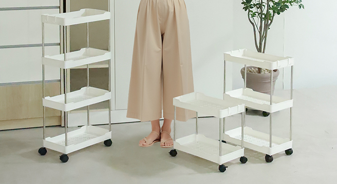 - 이동식 반려 트롤리 세탁실틈새수납장 선반 2단 3단 4단