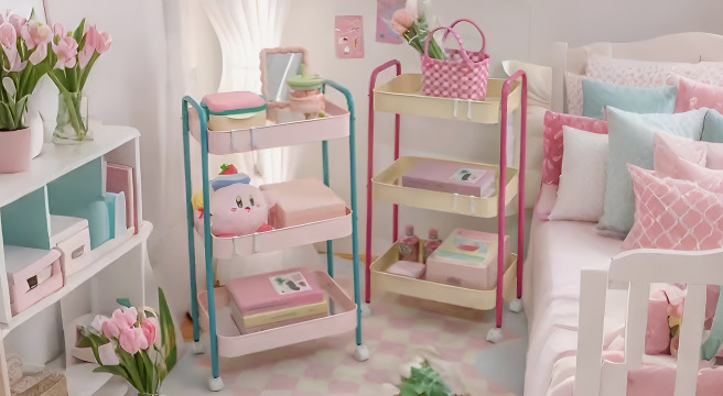 - 우아플레이스 예쁜 3단 이동식 트롤리 선반 트레이 바퀴달린 수납장 다용도 후크걸이 4p 증정