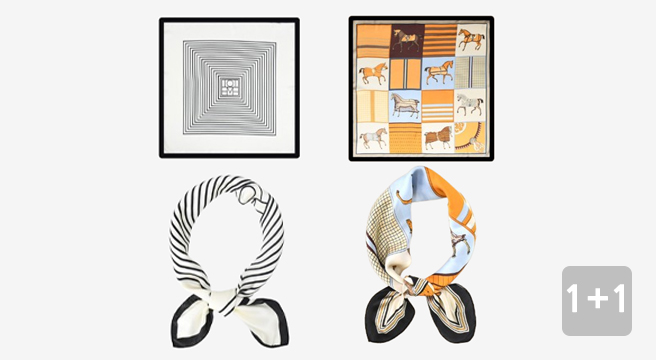 - 1+1 여성 스카프 실크스카프 쁘띠스카프 봄 가을 사각 미니 스카프 총 2개