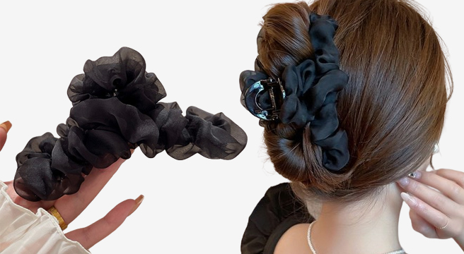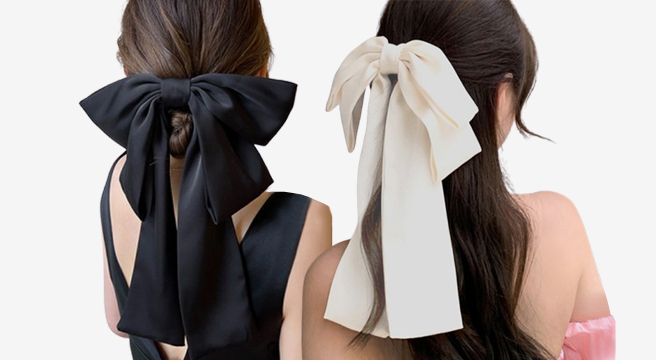 - 1/1+1 여성 뒤통수 헤어핀 리본 헤어핀 헵번풍 기질 새틴 헤어핀 헤어스크런치