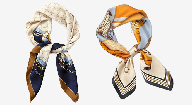 - 1+1 여성 스카프 실크스카프 쁘띠스카프 봄 가을 사각 미니 스카프 총 2개