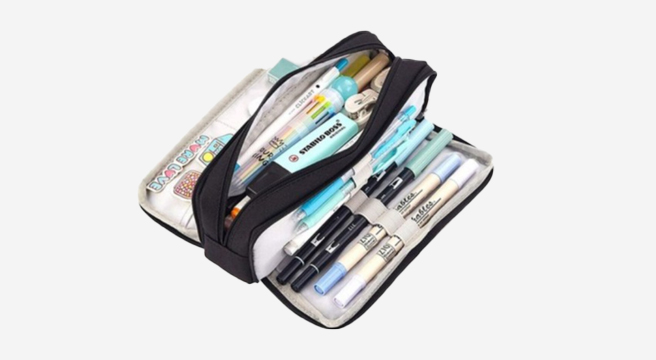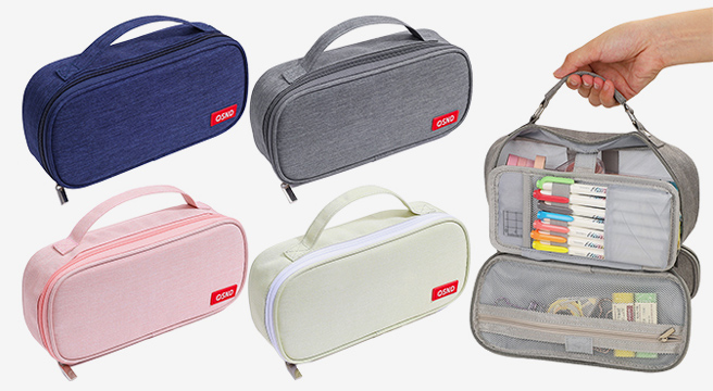 - 캔버스 2단지퍼 필통 중학생 고등학생 대학생 대용량 방수 파우치 펜슬 케이스